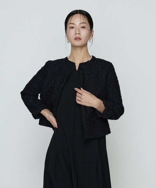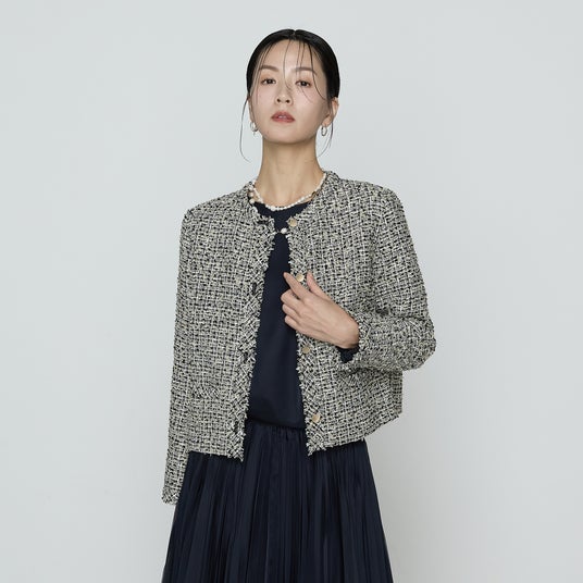 フリンジディテールで、ツイードの華やぎを引き立て、ハレの日にも映えるアクセントに。