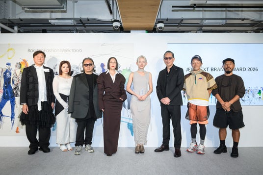 さらに2022年にJFWOが発足したブランドサポートプログラム「JFW NEXT BRAND AWARD 2026」グランプリ受賞『mukcyen』(ムッシャン)デザイナー木村 由佳さん、および特別賞に選出された『Jun.y』(ジュンワイ)デザイナー山本 淳さんへの授賞式を審査員の方々が一堂に会して行われました。『mukcyen』は9月1日の会期トップで初のランウェイショーを開催しています。