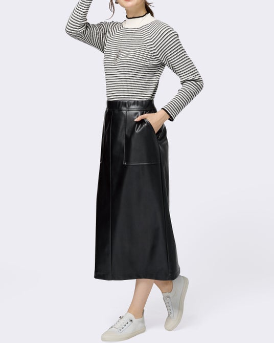 ストレッチレザー調ストレートスカート【価格】¥3,990(税込)