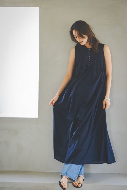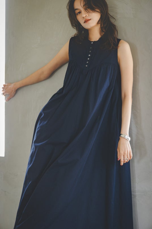 Sleeveless Cotton Dressmade in india コットンノースリーブワンピース