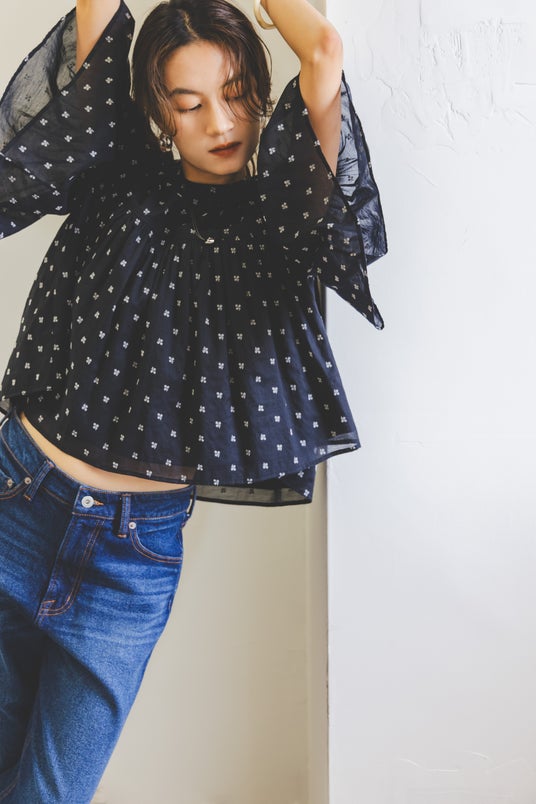 Flocked Flower Cotton Blousemade in india コットンフロッキーフラワーブラウス ¥19,800(税込)