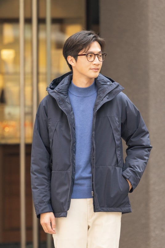 1.はっ水機能を備え、デザインと機能性を両立した1着