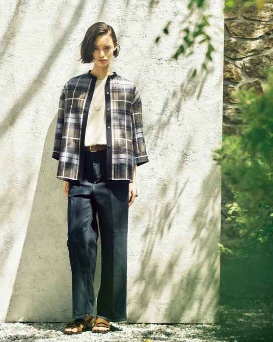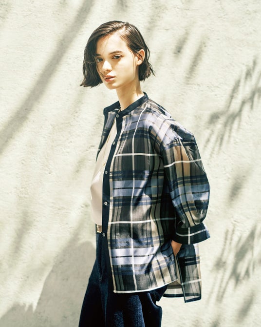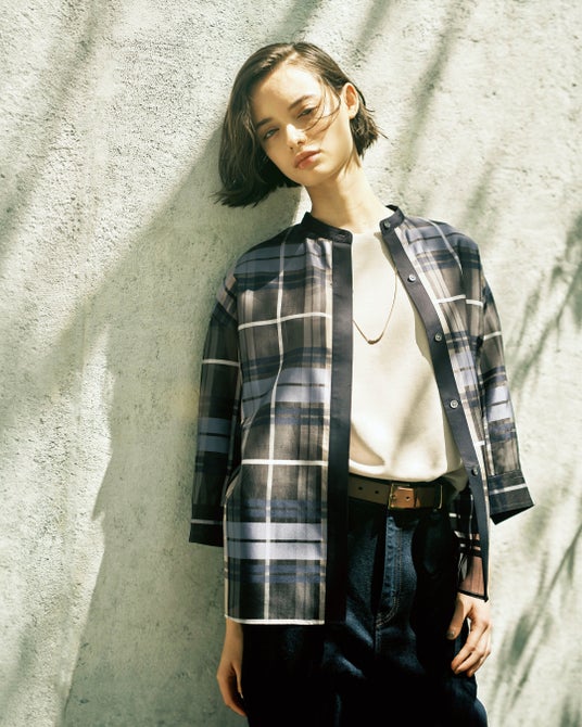この度、趣のある海外のアンティークチェック柄に魅せられて着想した、オリジナルのチェック柄シルク混生地でシャツとブラウスを展開します。糸の染めは京都で、織りは群馬県の桐生で作り上げた日本製です。2025年6月12日(木)から全国のコムサ・ステージやコムサ・プラチナの店舗、オンラインストアなどで販売します。