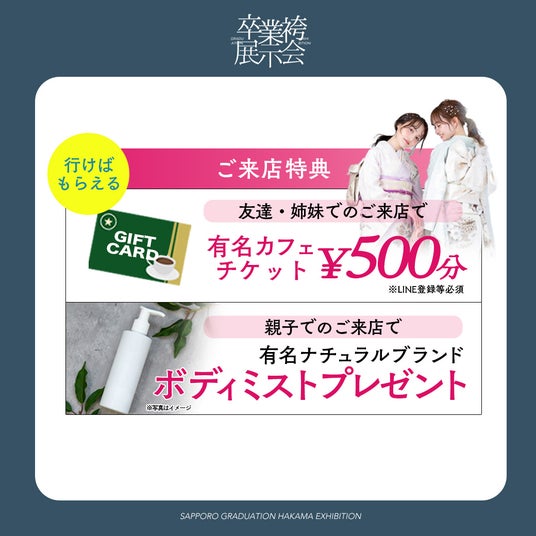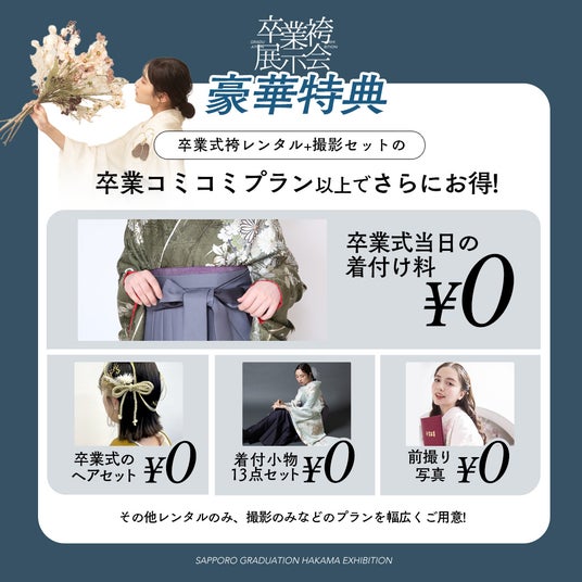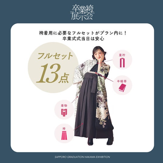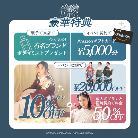 札幌・旭川に店舗展開するPalette(本社/有限会社三景スタジオ)にて「卒業袴展示会」を開催。卒業式まであと約半年、夏休みの今がチャンスです!