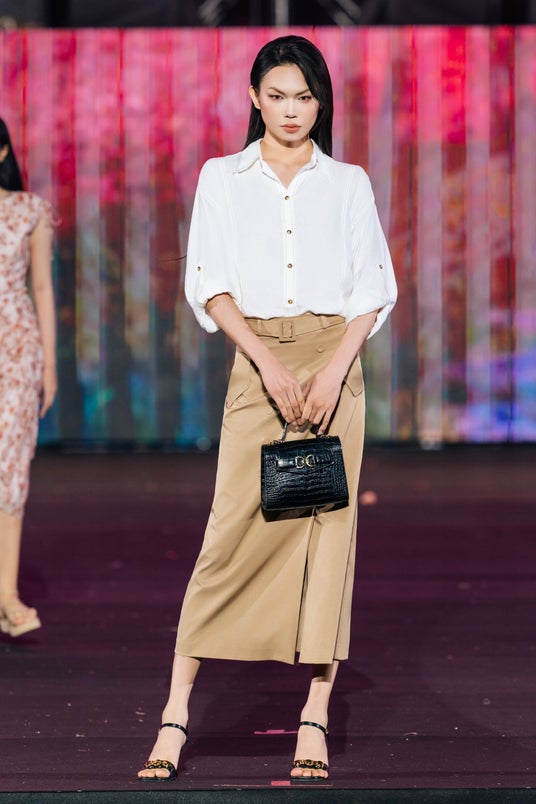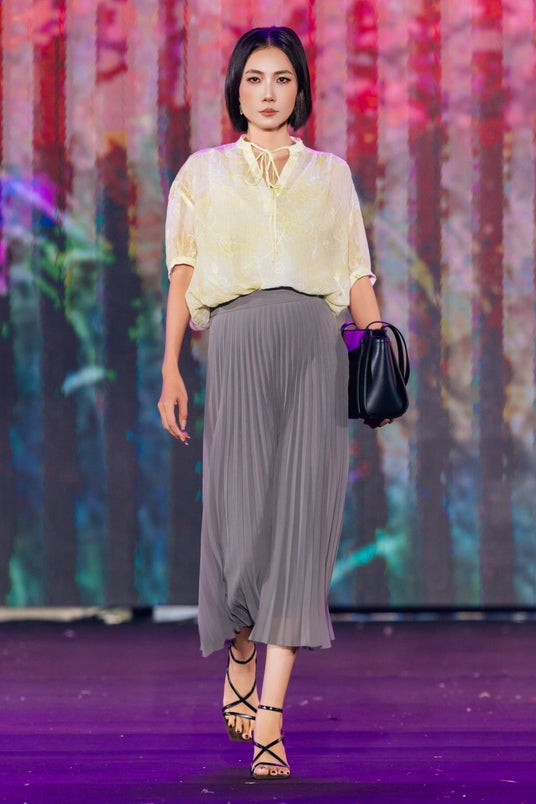当日は、他ブランドとの合同形式ではなく、「NEM」単独のファッションショーとしてステージを展開。ブランドの世界観を表現しながら、若年層に向けたスタイリングや新たな魅力を発信しました。また、同グループブランド「VASCARA」のバッグやシューズを取り入れ、トータルスタイリングとしてコーディネートを完成させました。