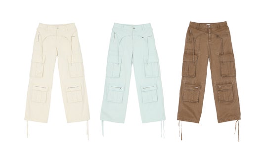 カーゴパンツはコラボしたどの主役級トップスとも相性のいい万能なアイテム。無難にならないよう、ウエストのあしらいや大きなポケットなど、ディテールによって存在感を出しています。カジュアルな中にも、女性らしさを感じられるバランスやシルエットにこだわった一着。