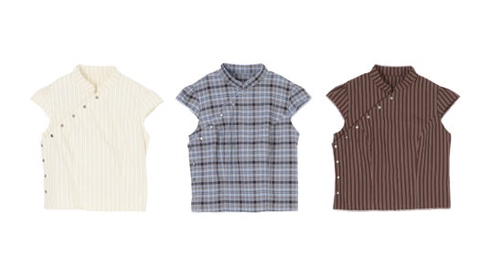 好きなチャイナディテールをベースにしながらも、メタルボタンを採用することで甘さを抑え、ブランドらしいエッジを効かせた一着。フロントを開閉できる仕様にすることで着脱のしやすさを高め、さらにバックの調整ディテールによってウエストラインを美しく見せられる設計になっています。キャップスリーブは腕のラインをきれいに見せてくれる絶妙なカッティングで、タンクトップが苦手な方にも取り入れやすいバランスに。丈感もお腹が見えすぎない絶妙な長さにこだわり、ヘルシーさと安心感を両立。