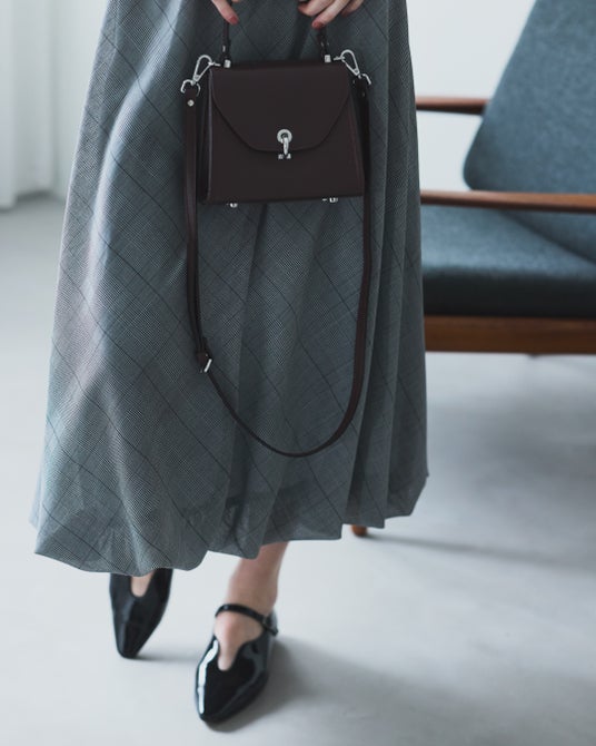 - クラシカルなモノトーンベースのグレンチェックに、さり気なく細いカーキの縦ラインを入れて、秋らしさもプラスしています。