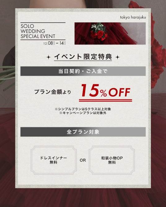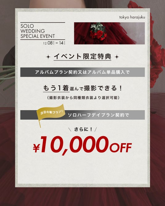 aim初のソロウェディングスペシャルイベント開催決定。ソロウエディングを検討されている方へ、aim東京原宿店が贈るこの期間だけの特別な1週間。