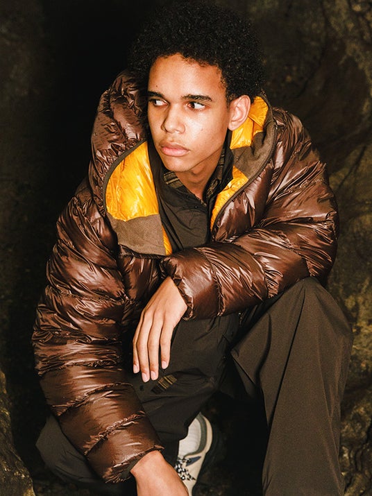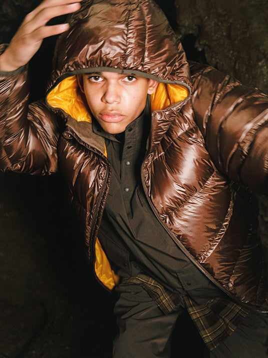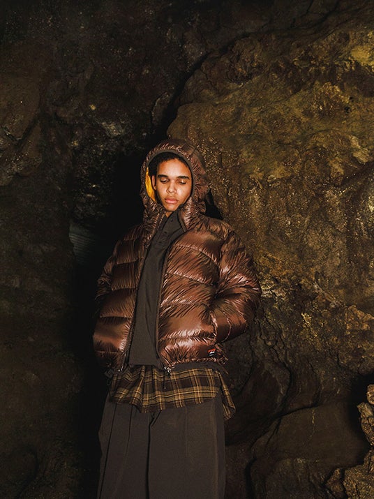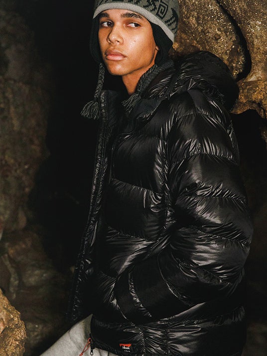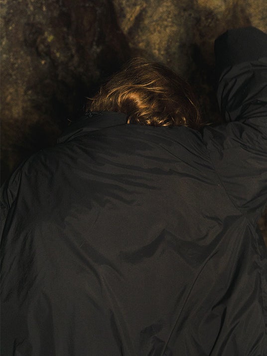 袖を通した瞬間に感じる軽さとしなやかさは格別で、冬の重たい印象を払拭する新しい着心地を体感できます。袖口やフード口はストレッチテープでバインディング処理されており、冷気の侵入を防ぎながら顔まわりや袖元をすっきりと見せるディテールに。裾はゴムスピンドル仕様で、スタイルや気温に応じたシルエット調整が可能です。