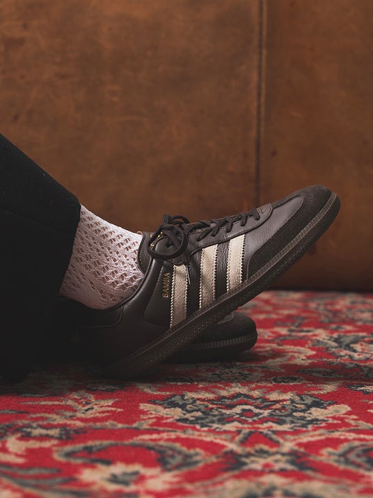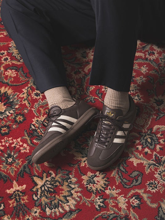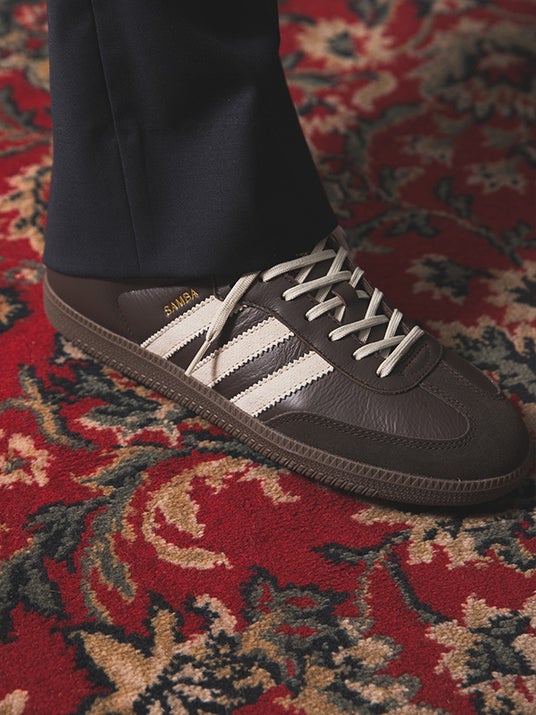 ブラウンを引き立たせるアクセントカラーに、サイドのスリーストライプスにはスエード素材でグレー、シュータンのトレフォイルロゴと外側の「SAMBA」レタリングにはゴールドを採用。シンプル過ぎずファッショナブルに履いていただけます。