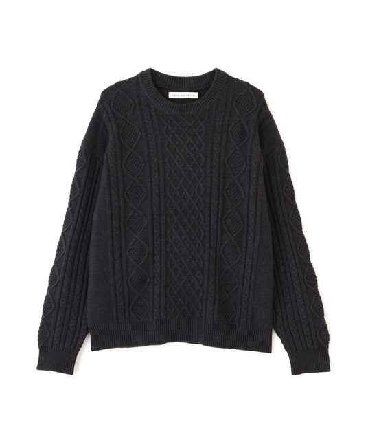 ¥9,900 tax in冬から春の装いに欠かせないケーブルニット。立体感のある編み柄で、一枚でも着映えするデザインが魅力です。素材にはコットンを採用し、柔らかな風合いと軽やかな着心地を実現。手洗い可能なウォッシャブル仕様で、日々のコーディネートに自然と馴染む一着。