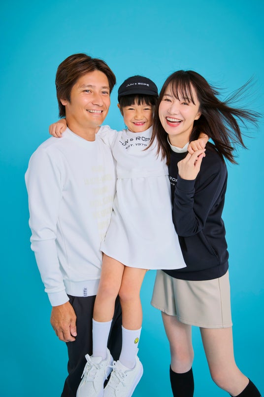 ビジュアルには、三枝氏自身がモデルとして登場。夫・娘と過ごす日常や、ゴルフを通じて親交のある元バレーボール選手・狩野舞子さんとの交流など、リアルな関係性を切り取ったシーンを採用しています。ゴルフの時間はもちろん、日常のさまざまなライフシーンにも自然に寄り添うウエアを提案します。
