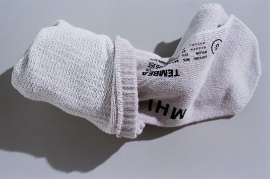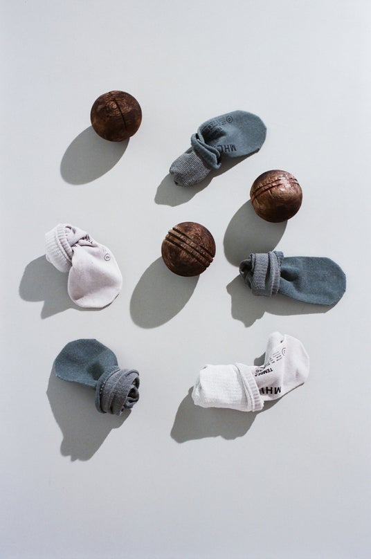 軍手工場で生産されるTEMBEAのソックスを、MHL. のオリジナルカラーで展開。つま先に接(は) ぎ目の無いシームレスの構造は指先がごわつかず、履き心地にこだわった丈夫なつくり。MHL.とTEMBEAのダブルネームのロゴもさりげないポイント。