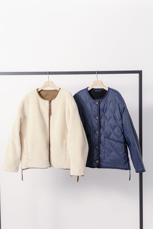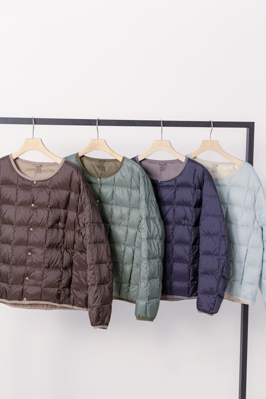 第2弾となるコラボレーションは、昨年も大好評だったライトダウンブルゾンをアップデートさせたリバーシブルダウンブルゾンに加えて、新たにダウンベスト・ボアダウンブルゾン・ボリュームダウンとバリエーション豊富な計4型を発売。