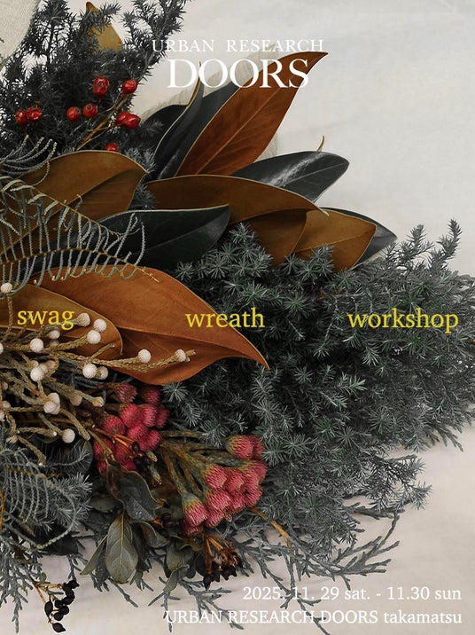 URBAN RESEARCH DOORS 丸亀町グリーン高松店にて、クリスマスムードが高まる11月末の2日間、クリスマススワッグとリース作りのワークショップを開催いたします!