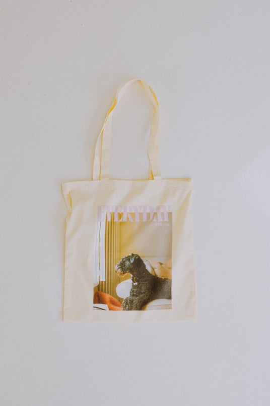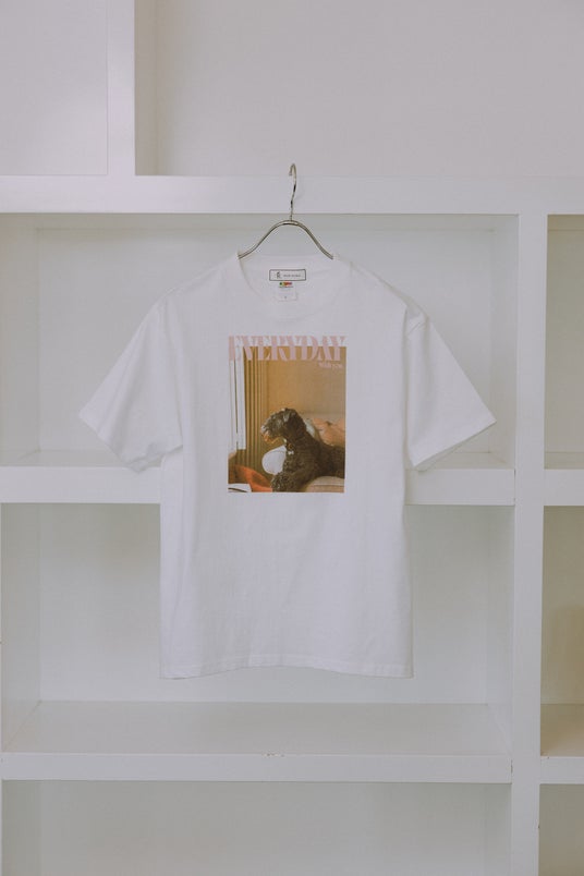 それぞれの号が特定の犬種とテーマで編集された「DOG MAGAZINE」のコンテンツから、「そばにいるしあわせ」をコンセプトに、横向きに佇む犬のフォトのみを採用しました。穏やかな時間を感じさせる、リラックスムード漂う T シャツと、トートバッグを全 3 種類のデザインで展開します。