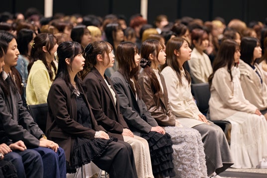 入社式には代表取締役 社長 CEOの下地のほか取締役、監査役、各グループ会社の社長らが出席。下地は新入社員を前に「当社は“ファッションエンターテインメントの力で世界の共感と社会的価値を生み出す”というパーパスを掲げています。アパレルの仕事は、単に「服を作って、売る仕事」ではありません。私たちがお客さまに届けているのは、服そのものではなく、「装う喜び」や「自分らしく生きる楽しさ」、そして、「夢への新しい一歩」です。流行や数字だけを追うのではなく、街を歩く人々の表情や、日常の小さな変化に気づくこと。そこから、本当にお客さまに求められる商品やサービスが生まれます。 どうかさまざまな業務を担う仲間たちと協力し、学び続け、そして自分自身も楽しみながら仕事をしてください。互いを尊重し、助け合いながら、お客さまに最高の価値を届けてください。皆さん一人ひとりの感性や価値観は、これからの当社にとって大きな力になります。若い皆さんだからこそ見える視点、感じられる変化があります。遠慮せず、新しい発想や挑戦をどんどん提案してください。ファッションには社会を変えていく力があり、世の中をもっと楽しくできる力があります。環境にやさしく、人にやさしく、社会に貢献しながら、われわれのビジネスの礎である、サステナブル経営を一緒に担っていきましょう。」と激励の祝辞を述べました。