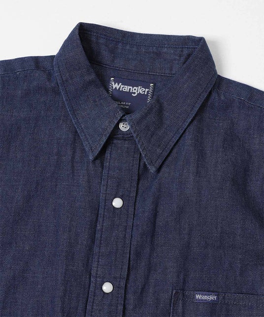 左胸の大きめポケットにはWの刺繍とピスネームを施し、パールボタンがWranglerテイストになっています。