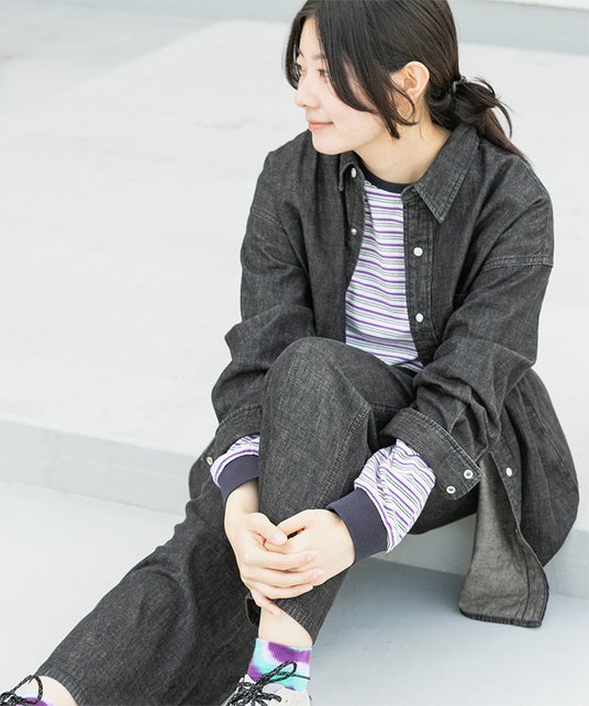 EKALオリジナルのデザインの、ワイドシルエットなデニムシャツ。