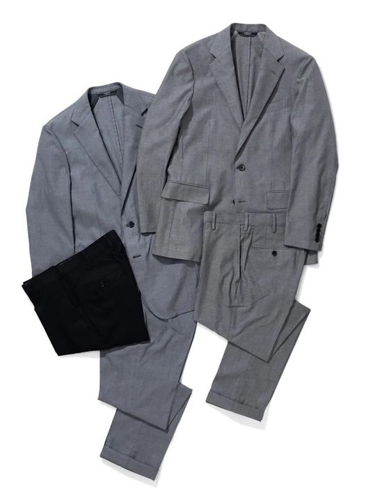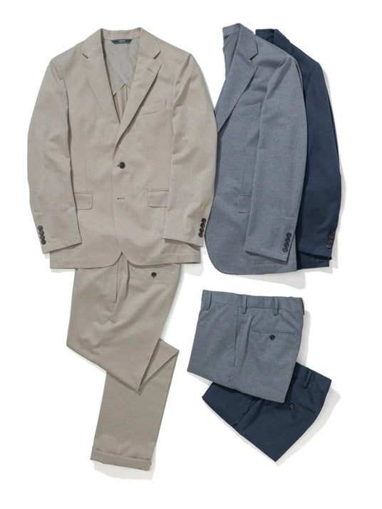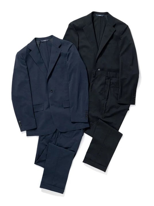 機能性と着心地を追求した新作のセットアップスーツが登場。昨今の気候や仕事着の多様性に合わせナイロン素材を採用し、ストレッチ・ウォッシャブル・防シワといった多機能に優れたアイテムが完成しました。ドビー織りの生地を用いることで上品な質感と立体感がうまれ、季節問わずビジネスシーンからカジュアルなシーンまで幅広く活用できます。軽量でありながら耐久性も兼ねているため出張や長時間の着用にも適しており、忙しいビジネスマンの味方となる一着です。