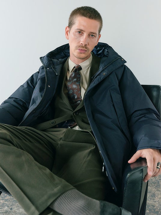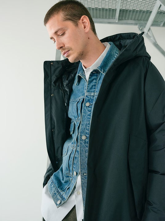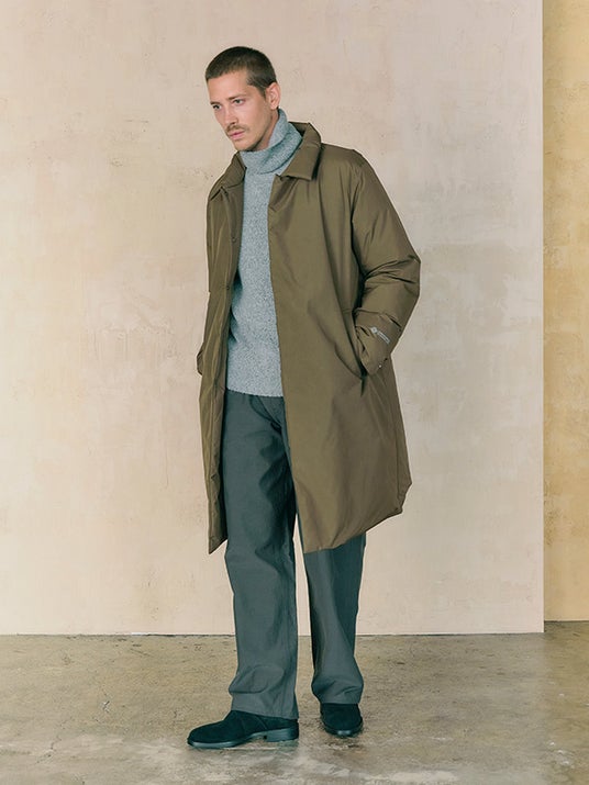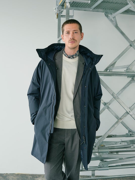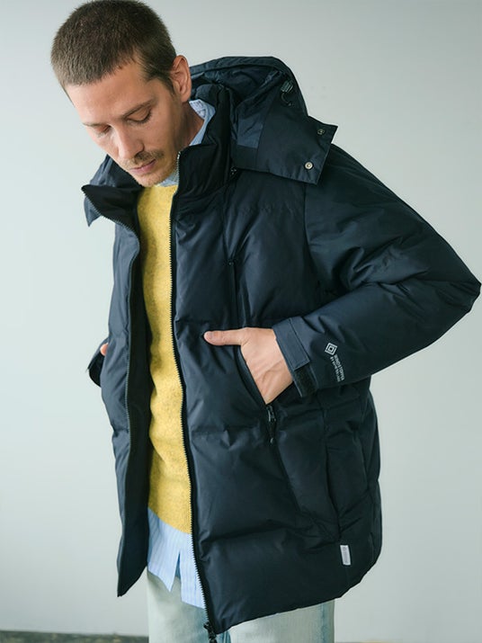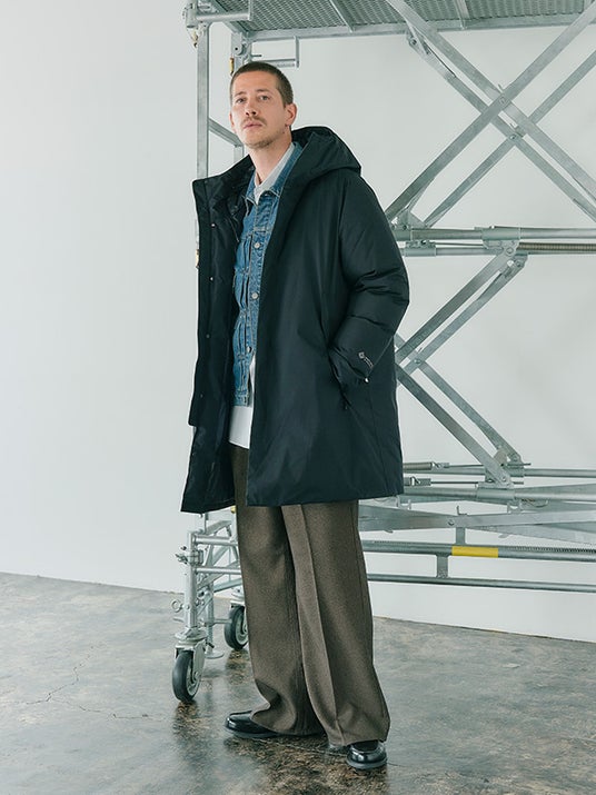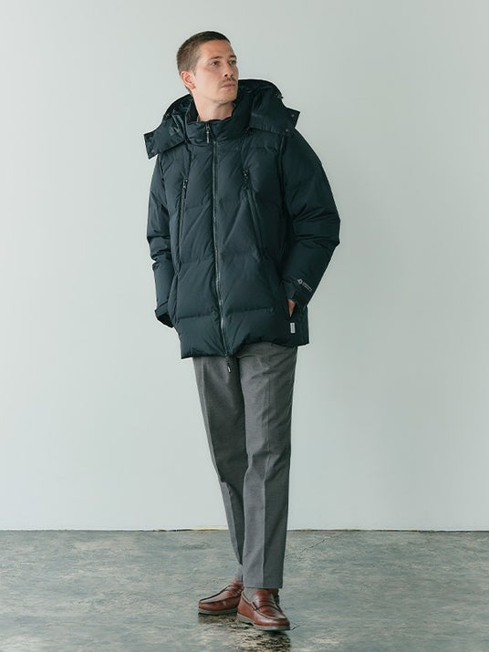 ミドル丈が特徴のダウンコートは極力ディテールを排除し、シンプルかつスタイリッシュでミニマルな大人の雰囲気に仕上げました。