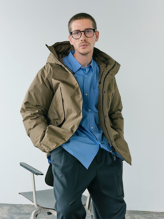 高い保温性を兼ね備えたダウンジャケット。フロントは前立て、フラップポケット、袖口は圧着仕様にすることで、すっきりしたデザインに落とし込みタウンユースでも大活躍する1着。