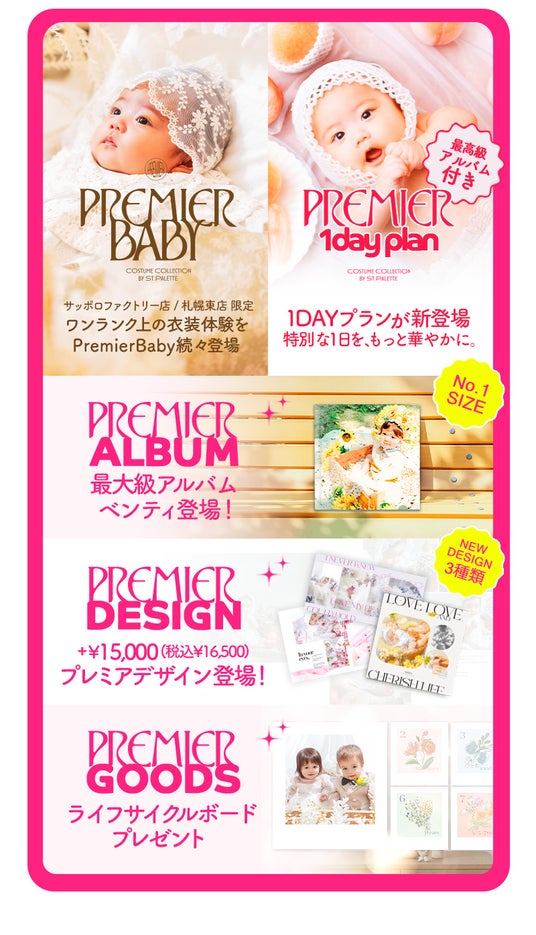 有限会社三景スタジオが運営する「写真工房ぱれっと」から、最高級の衣装とアルバムを揃えた『プレミアシリーズ』が1月より新登場。