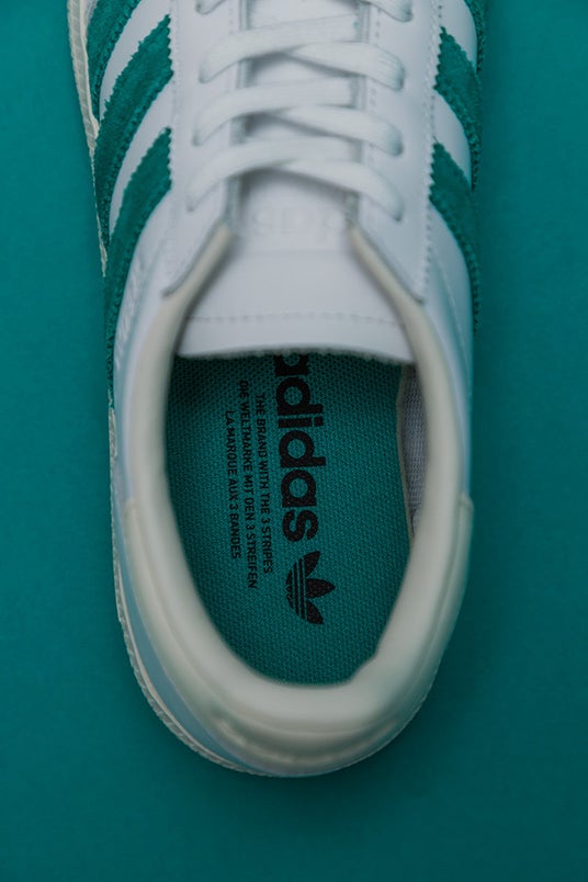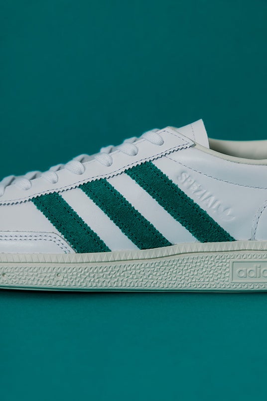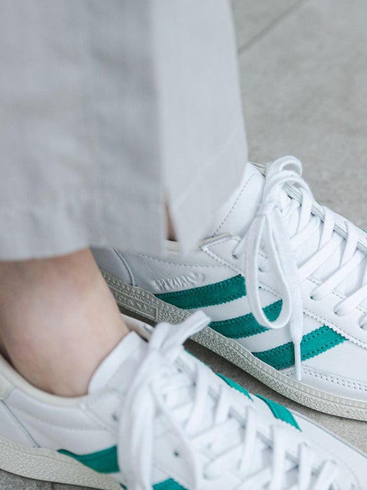 クリーンなアッパーとクラシックな風合いのソールで、本来のHANDBALL SPEZIALらしさ、そしてエキップメントグリーンとの色合いがレトロ感を体現しています。