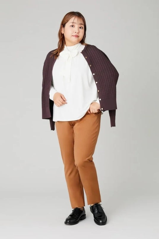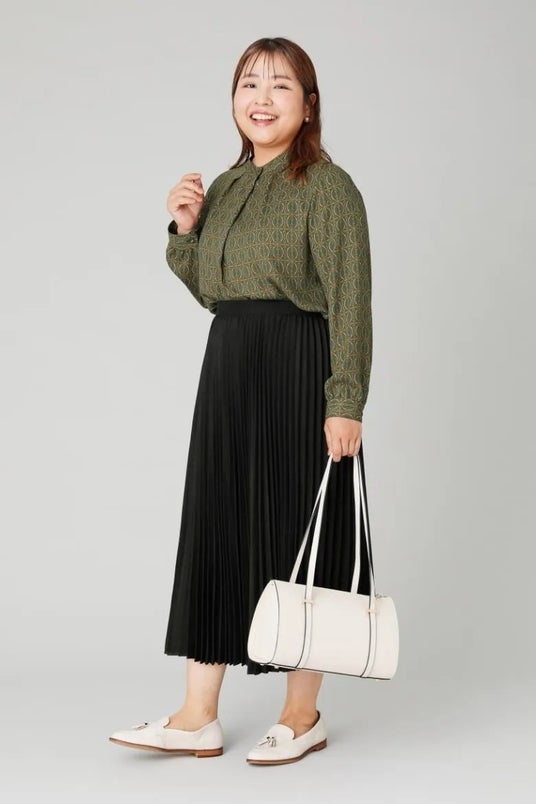 秋らしい空気を感じながらも、日中はまだ軽やかな装いで過ごしたいこの時期。ジャケットに頼らずきちんと感を演出できるオフィススタイルをプラスサイズモデルの吉野なおさんに着ていただきました!