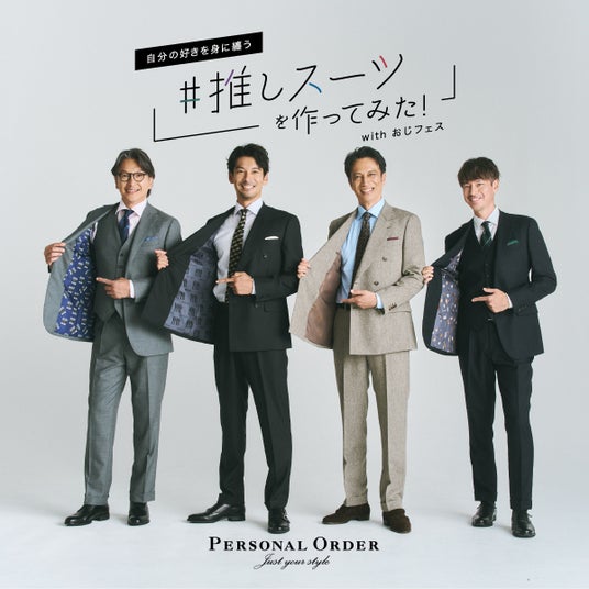 衣料事業の主力ブランドNEWYORKERを中心とした衣料服飾品の企画、製造、販売、不動産の売買、仲介、賃貸管理を行っている株式会社ダイドーフォワード(本社:東京都千代田区/代表取締役:成瀬 功一郎)は、特集コンテンツ「自分の好きを身に纏う #推しスーツ を作ってみた withおじフェス」を自社通販サイトで公開しました。また、特集にあわせて、パーソナルオーダーフェアを開催いたします。