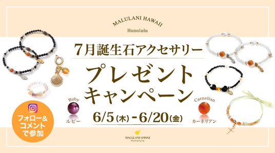 ハワイ発祥の天然石アクセサリーブランド「マルラニハワイ」にて、7月の誕生石「カーネリアン」を使用したパワーストーンアクセサリーをプレゼントする特別キャンペーンを開催いたします。