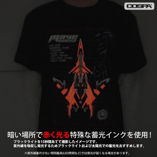 そして、赤の蓄光インクを採用することで発光パターンを視覚的に再現しジャム・センスジャマーの搭載に成功した「メイヴ“雪風” ジャム・センスジャマー 蓄光Tシャツ」も登場。