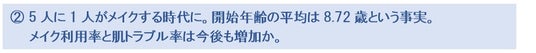 小学生のメイク利用が高まる中で、肌トラブル率も増加することが考えられ、夏場の乾燥対策や紫外線対策がさらに重要であることが伺い知れます。