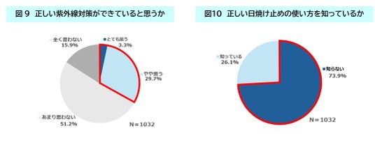 また、「お子さんの紫外線対策は、自信をもって対策ができている」という方が約3割という結果でした。さらに「子どもの正しい日焼け止めの使い方についても、約7割以上が知らないと回答しました(図9・10)。