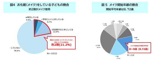 さらに、メイクを始めた年齢の平均が8.72歳と低学年という結果もあり、ここでもお子さんの美容に関する意識の高さが見られる傾向がありました(図5)。