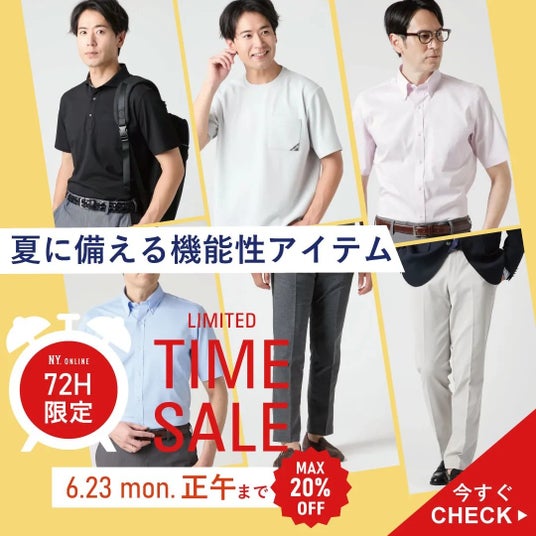 期間中、対象アイテムをご購入で最大20%OFFとさせていただきます!この夏活躍する半袖トップスやワンピース、クールビズアイテムなど、今ならセール価格からさらにプライスダウン!NYオンラインだけのこのお得な機会をお見逃しなく。