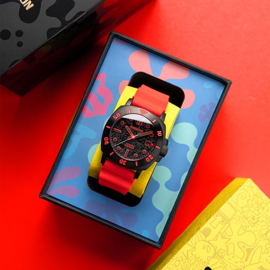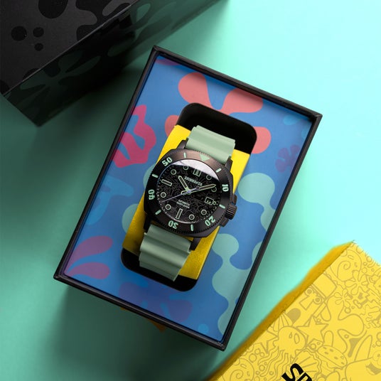 『スポンジ・ボブ』のキャラクターたちをオマージュしたカラーリングや文字盤のグラフィックによって、ゆかいでハッピーな世界観を表しました。