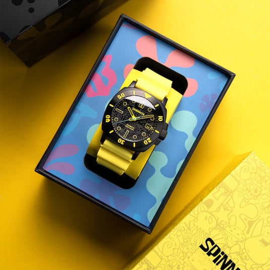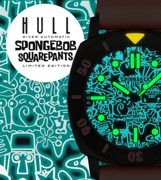 コラボレーションのベースとなったハルオートマティックは、クッションケースを特徴とするコレクションです。四角張ったケースにラウンドのダイヤルを備えたクッションケースは、その独創的なシルエットで時計愛好家から愛されてきました。奇しくも似たような姿をしたスポンジ・ボブと同じくらい、強力なアイデンティティを感じさせます。