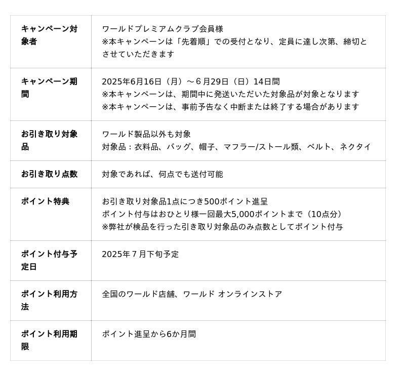 期間中、全国ワールド店舗・オンラインストアでのお買い物にご利用いただけます。