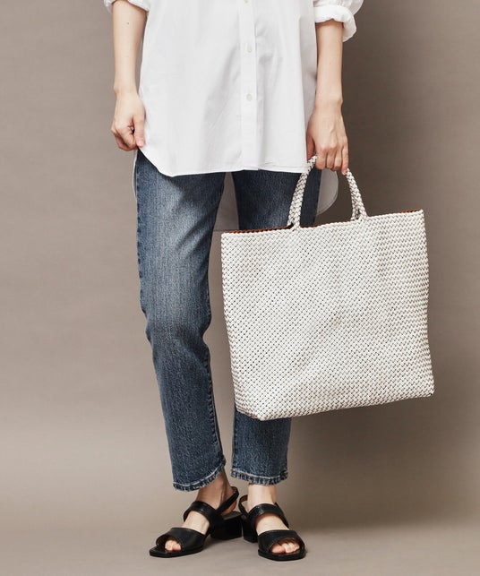 ハリと強度のあるバッファロー素材の<BREZZA BUFFALO>の新作は、シリーズで一番の大きさを誇るトートバッグ。メッシュ仕様のデザインは抜け感があり、ざっくりと持つだけでもリッチでこなれた印象に。ホワイトとブラックの2色展開です。