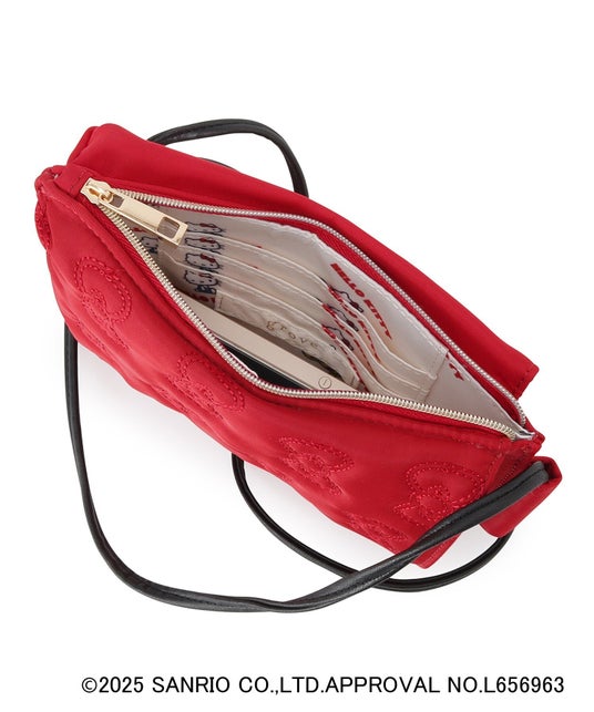 ハローキティのアイコンでもあるリボンモチーフがキルティングされた、Lee別注のショルダーバッグです。ボストンバッグのように口が大きく開くため、荷物の出し入れがしやすくなっています。