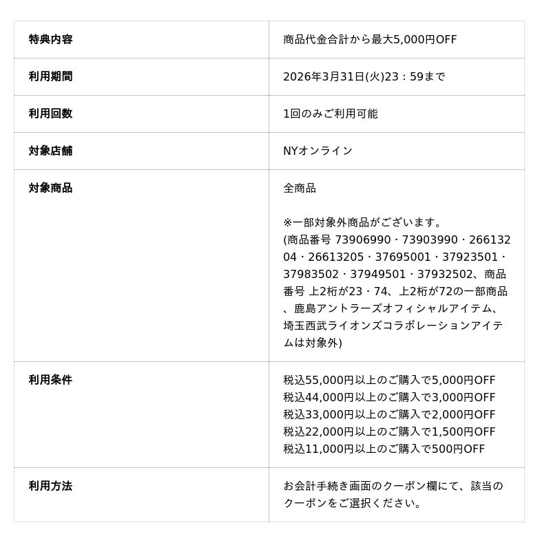 ※NYオンラインでのみご利用いただけます。実店舗ではご利用いただけません。