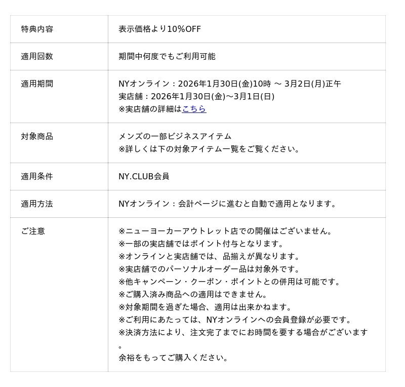 『NY.CLUB』は、公式オンラインストア「NYオンライン」、全国のニューヨーカー、ニューヨーカーアウトレット、アトラエルの店舗でご利用いただける会員プログラムです。