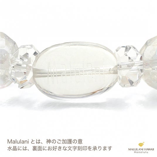 水晶には、ハワイ語で「神に護られた」という意味を持つ「malulani」と刻印。 持つ人に「神のご加護がありますように」との祈りをのせています。