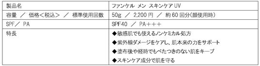 株式会社ファンケルは、2026年4月20日(月)から、男性用日焼け止め「ファンケル メン スキンケアUV」(容量:50g/価格:2,200円<税込>)を、通信販売、直営店舗、ECモールにて数量限定で新たに発売します。