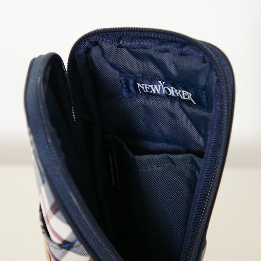 ニューヨーカーオリジナル仕様の内装。ゴム入りのポケットが両側に付いており、コスメ類はもちろんガジェットの収納にも一役買います。