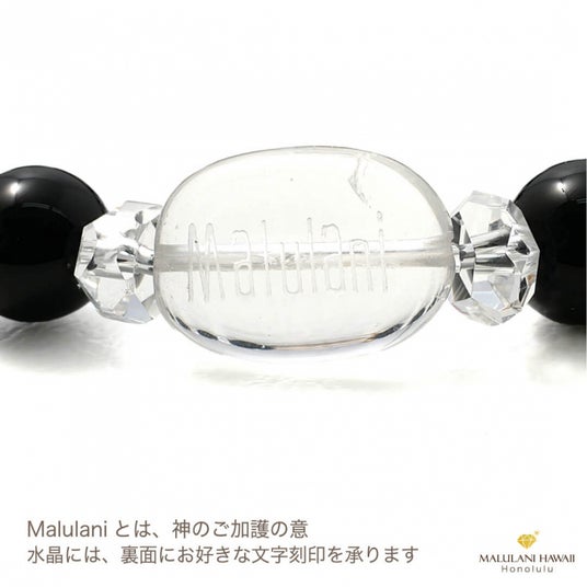 水晶には、ハワイ語で「神に護られた」という意味を持つ「malulani」と刻印。 持つ人に「神のご加護がありますように」との祈りをのせています。