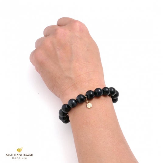 数珠ブレスレットにお付けするチャームは、ハワイの言葉を刻んだ5種類のチャームと、Malulaniと刻印のオーバルチャームからお選びいただけます。