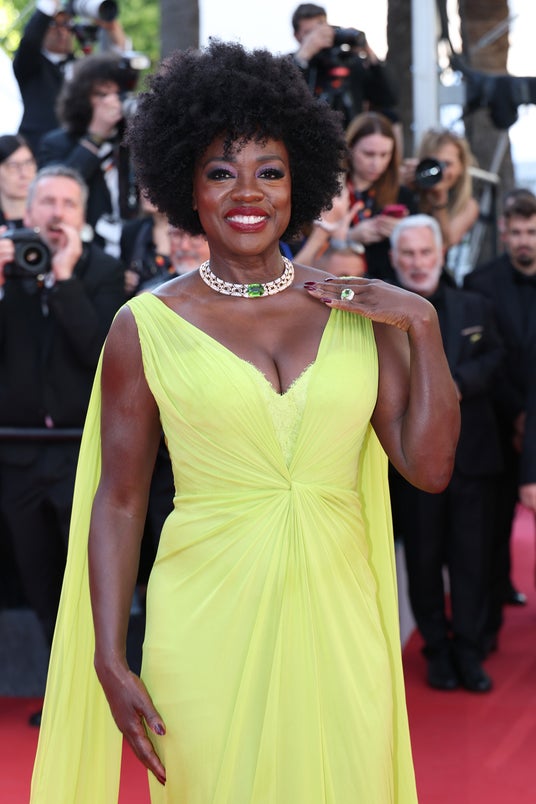 2025年5月19日(カンヌ、フランス) - アカデミー賞受賞俳優のヴィオラ・デイヴィスが、フランスで開催された第78回カンヌ国際映画際のレッドカーペットにて、中央にグリーントルマリンがあしらわれたブルガリのハイジュエリーのネックレスとハイジュエリーのリングを着用しました。